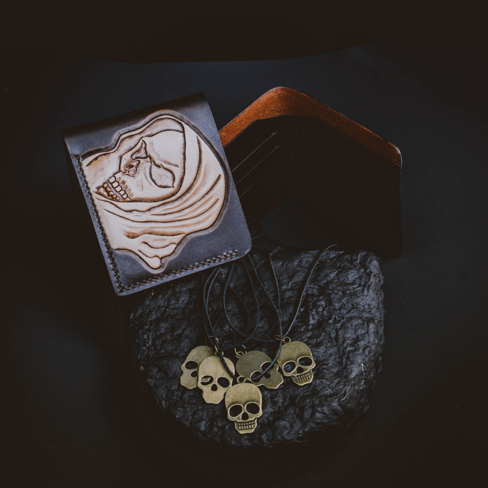 Portofele, brelocuri și jocuri realizate integral manual din piele tăbăcită vegetal sau velur.